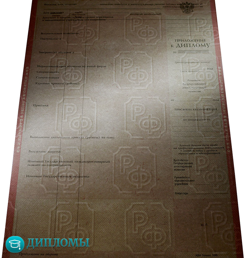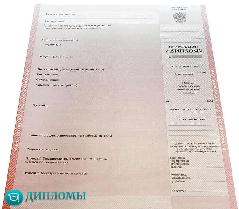 • Оформление обложки и дополнения, соответствующее оригинальному образцу диплома аналогичного года