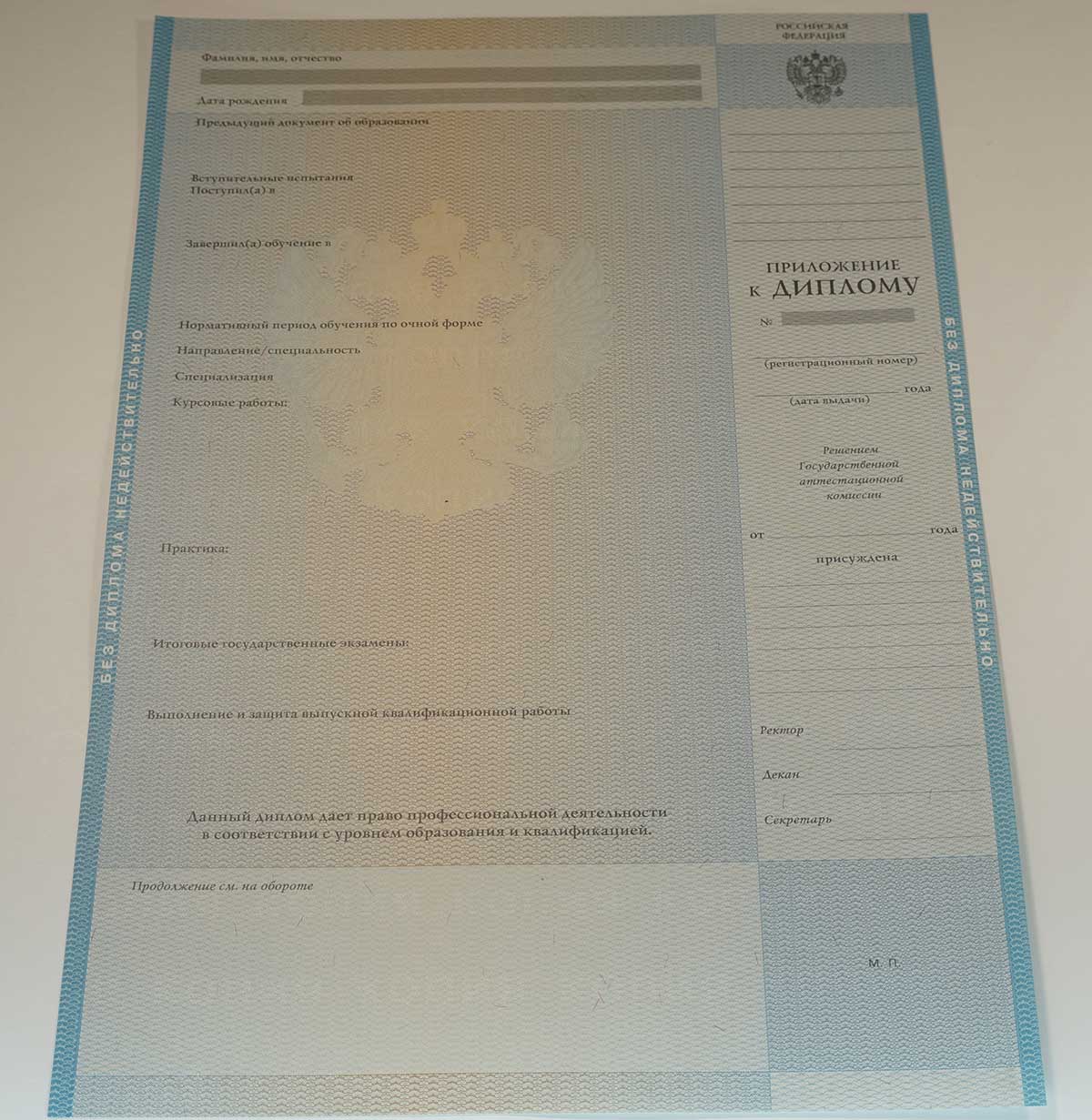 • Внимательно заполняют каждую графу бланка диплома